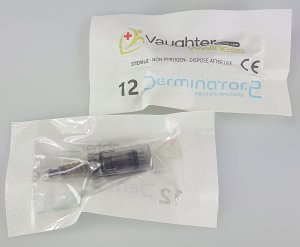 Derminator® 2 digital dermaneedling cartridge (12 needles). Needle diameter 0.15 mm. (38 SWG, 34½ AWG). Ethylene Oxide sterilized. The needles are made of surgical steel and do not contain nickel.